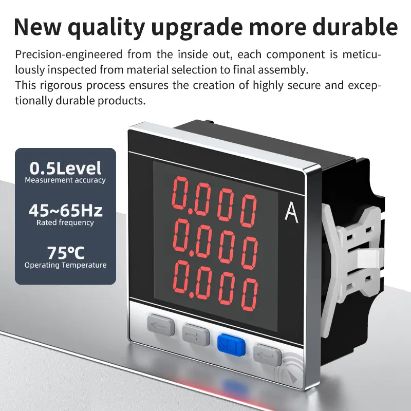 Digital display multi functional instrument is widely used in low-voltage distribution rooms, factory equipment, commercial buildings, residential electricity, pump control, fan control, power cabinets and other fields. It can be matched with Voltage and Current protector, Current Transformer and Miniature Circuit Breaker to realize integrated protection and measurement. Whether it is daily parameter monitoring or energy management, Digital display multi functional instrument can provide stable and reliable data support.