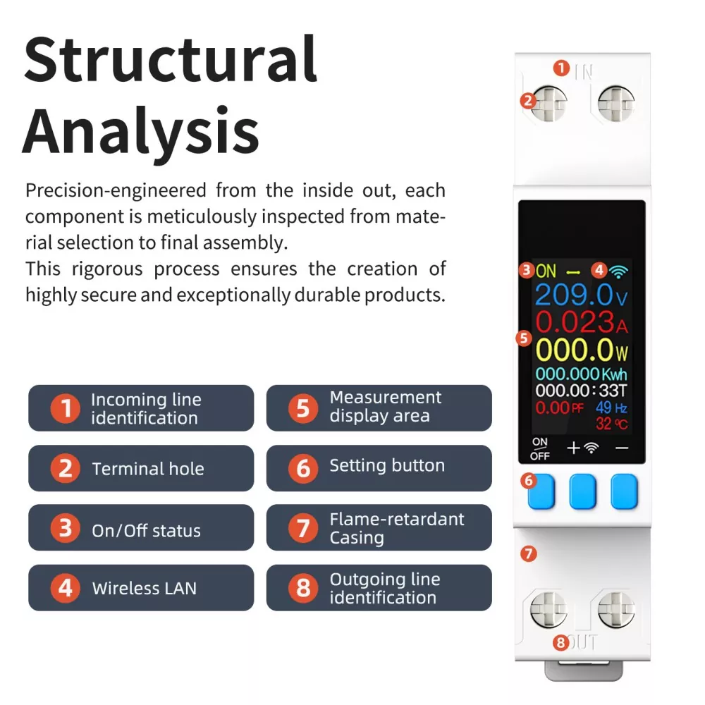 Our 1P DIN rail Meter adopts high‑performance metering chip with stable processing and high measurement accuracy, ensuring long service life.