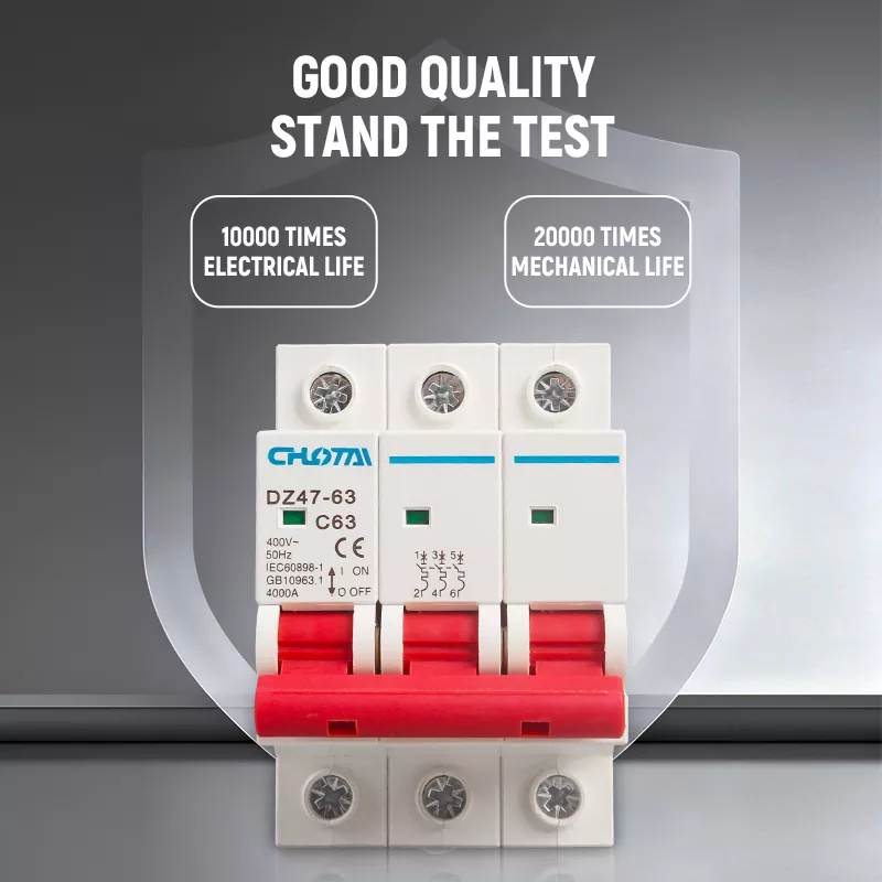 Our DZ47-63 MCB has passed CE certification (compliant with EU standards) and CCC certification (compliant with Chinese national standards), and meets IEC60898-1 and GB10963.1 international standards.