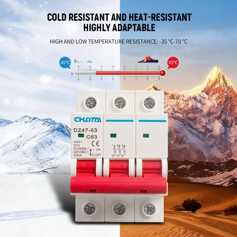 The MCB features excellent high and low temperature resistance, with a working temperature range of -35°C to 70°C . It operates stably in extreme cold (e.g., alpine regions) and high-temperature (e.g., desert, industrial workshops)