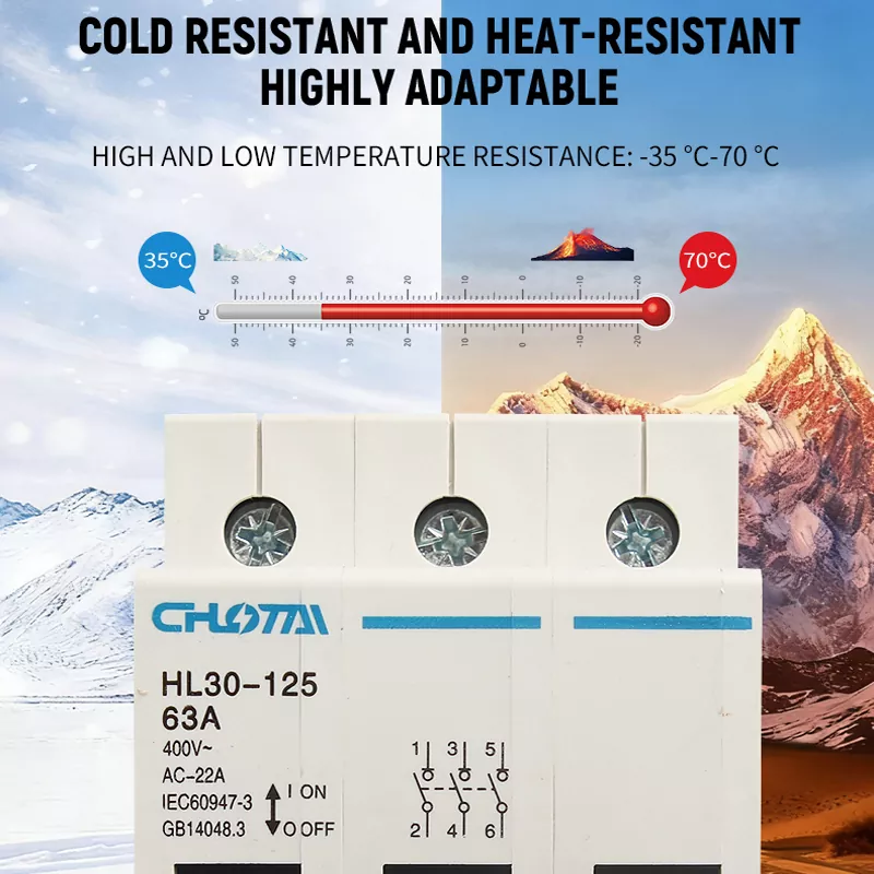 The HL30-125 disconnect switch features excellent high and low temperature resistance, with an operating temperature