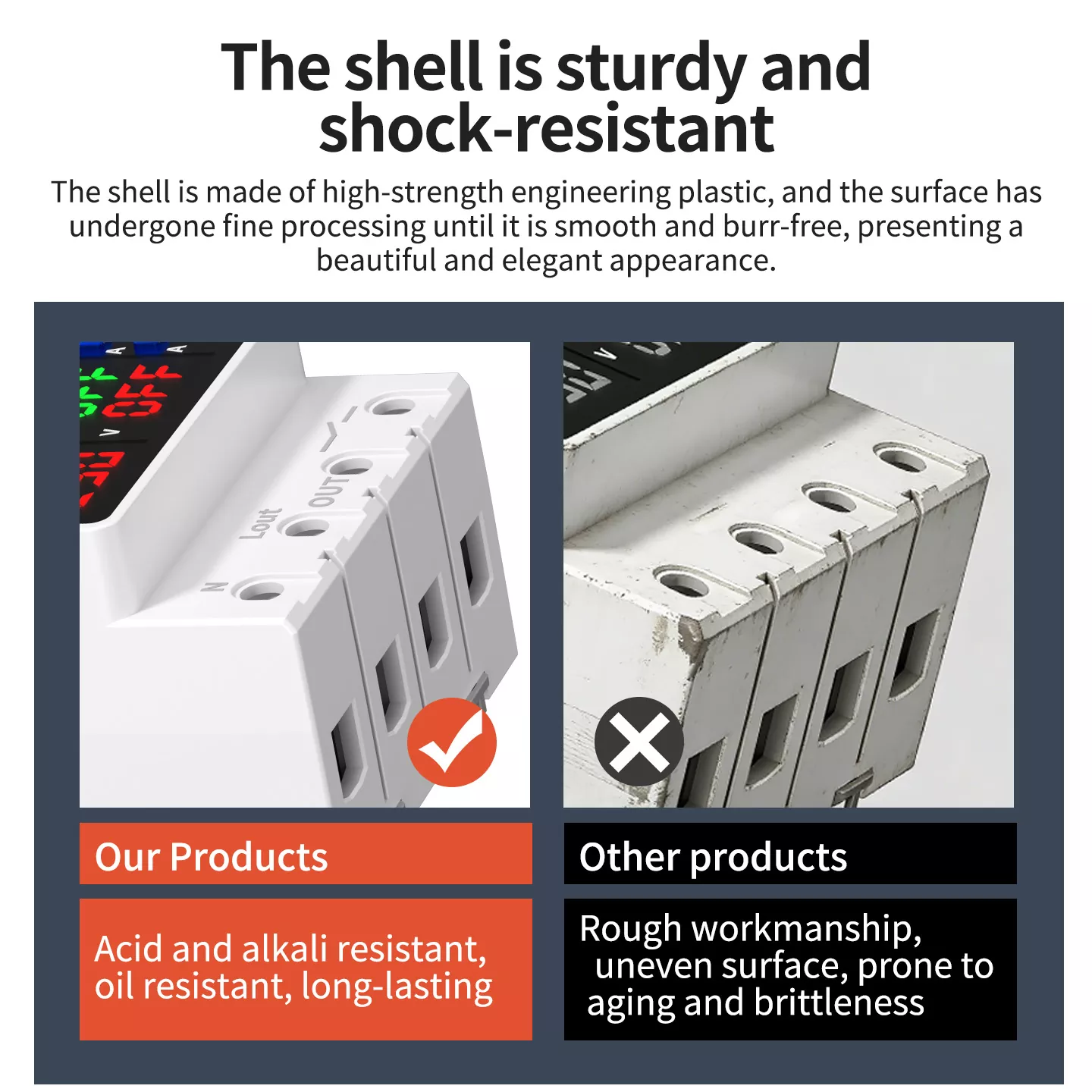 Compared with ordinary products, our 4P/8P Over and Under Voltage Protector features acid and alkali resistant, oil-proof