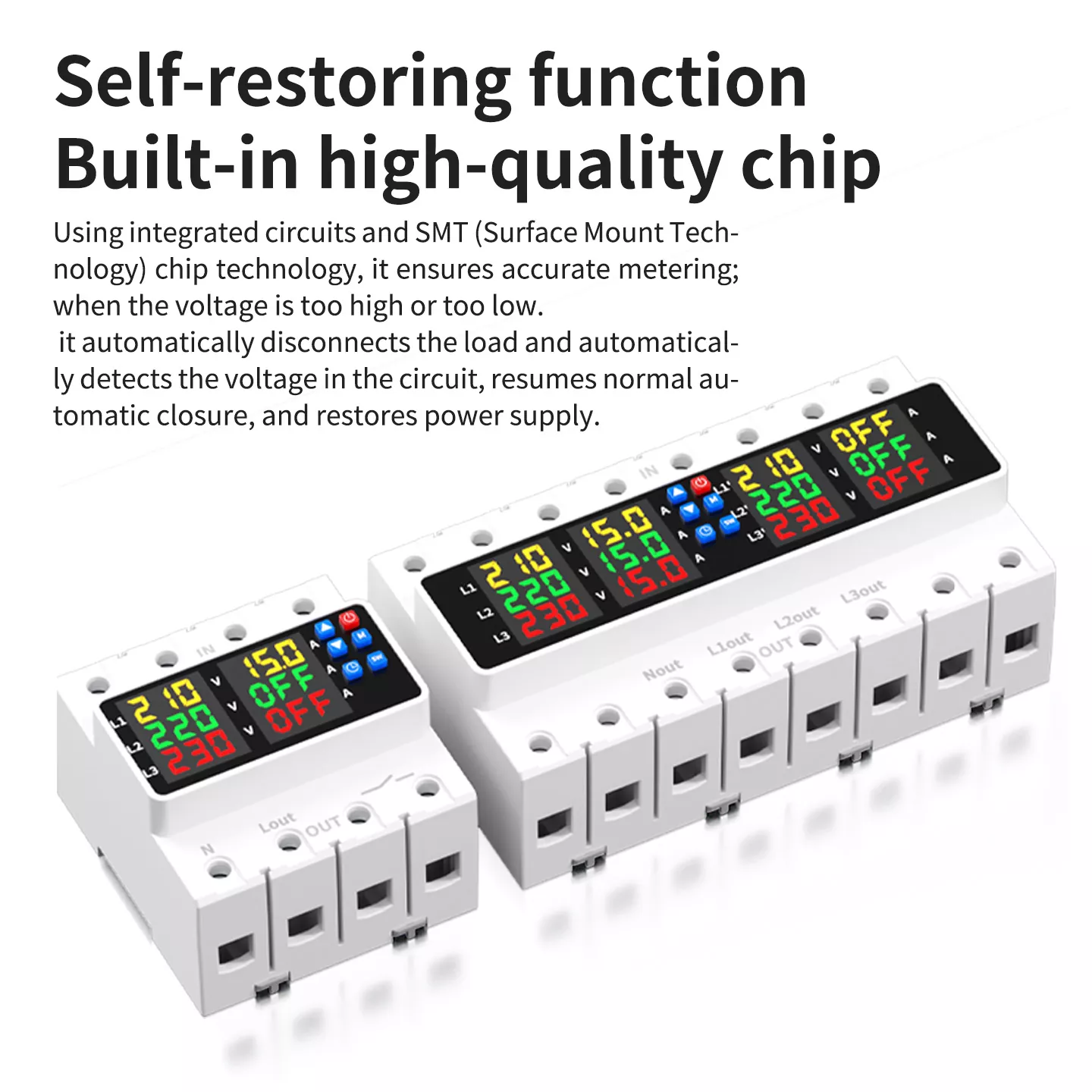 voltage monitoring and automatic self-restoring, effectively protecting electrical equipment from overvoltage and