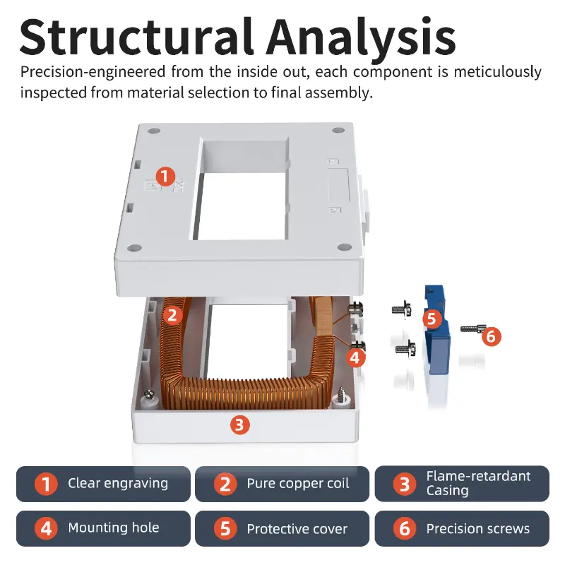 Current Transformer is widely used in power distribution cabinets, energy management systems, industrial control equipment, power monitoring and metering devices. It provides stable current signals for Rail mounted measuring instrument and digital display multi functional instrument.