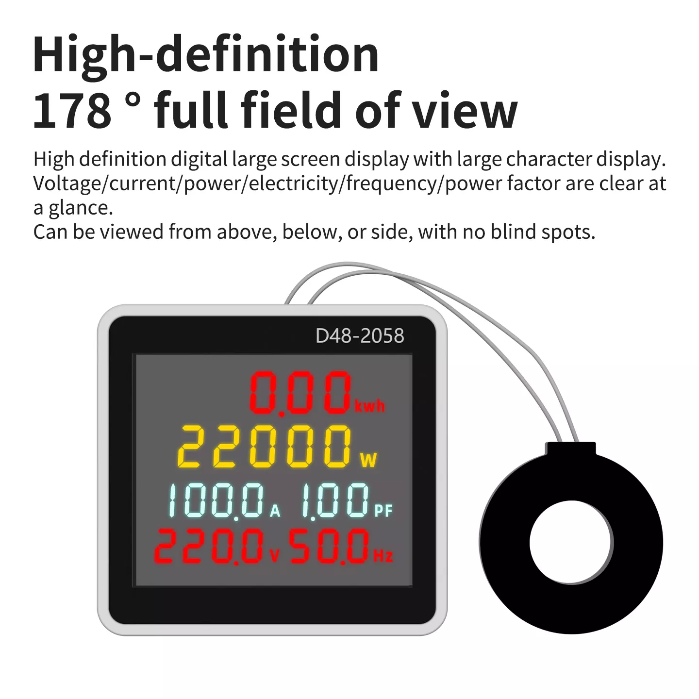 It comprehensively monitors voltage, current, power, energy, frequency and power factor, with a 178° full-view HD LED