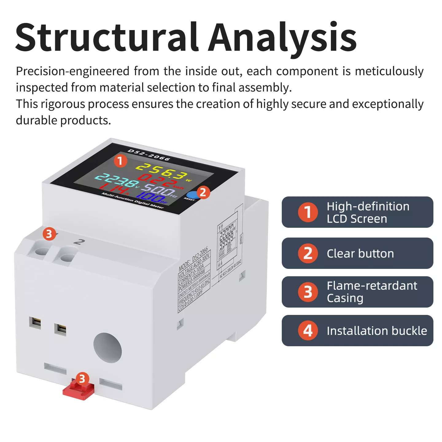 • 0.5-level high accuracy : The D52 2066 Multifunctional Meter delivers stable and precise power parameter monitoring, meeting industrial