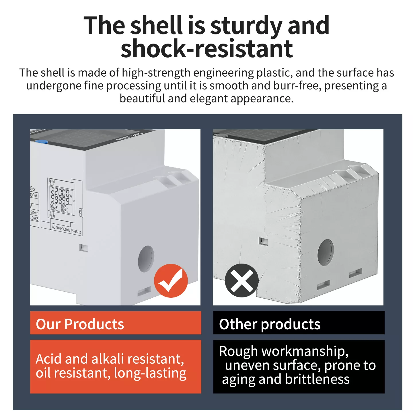 • Flame-retardant safety : Acid and alkali resistant PC casing prevents fire risks from short circuits and overloads, ensuring long-term safe