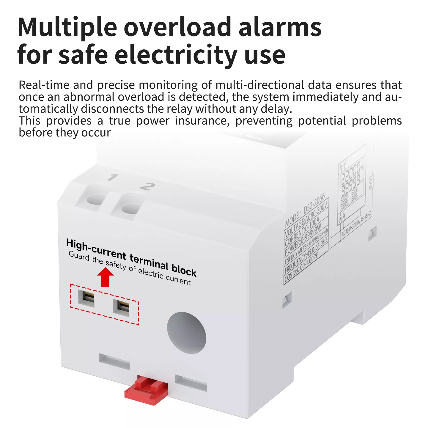 terminal block, enabling real-time monitoring of voltage, current, power, energy, frequency and power factor with