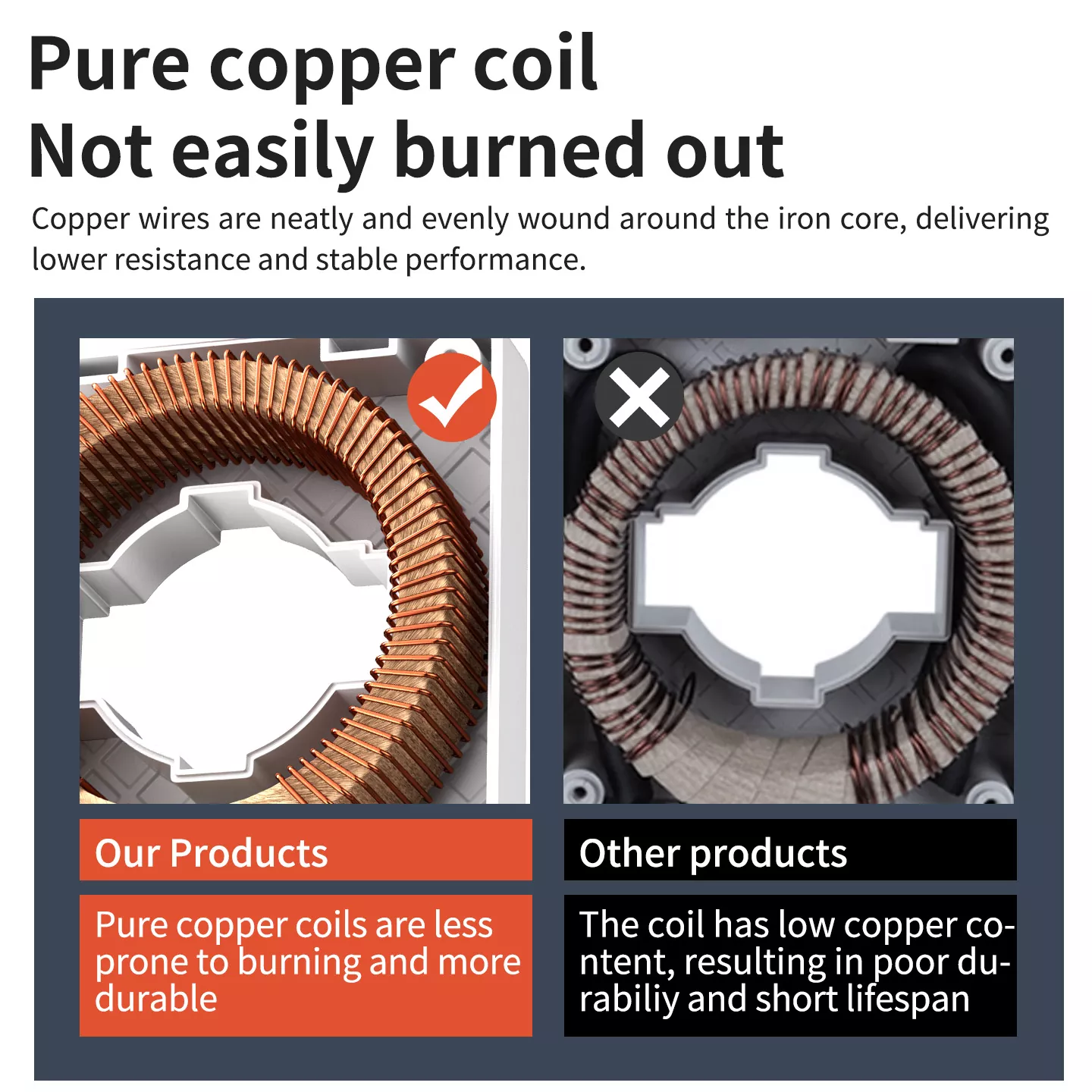 resistance and stable performance. Compared with other products with low copper content coils, our pure copper coils