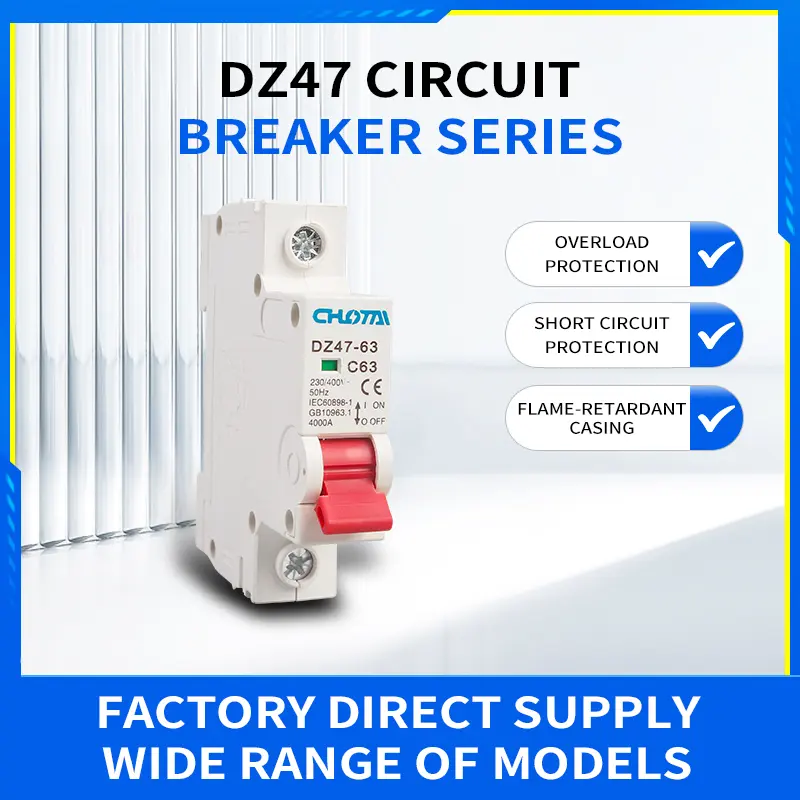 We supply a full series of Miniature Circuit Breaker with standardized DZ47 design, covering 1P 63A DZ47 Miniature Circuit Breaker, 2P 63A DZ47 Miniature Circuit Breaker, 3P 63A DZ47 Miniature Circuit Breaker and 4P 63A DZ47 Miniature Circuit Breaker. Different poles and current ratings are suitable for single-phase lighting circuits, three-phase power equipment, distribution box main switch and branch protection respectively.
