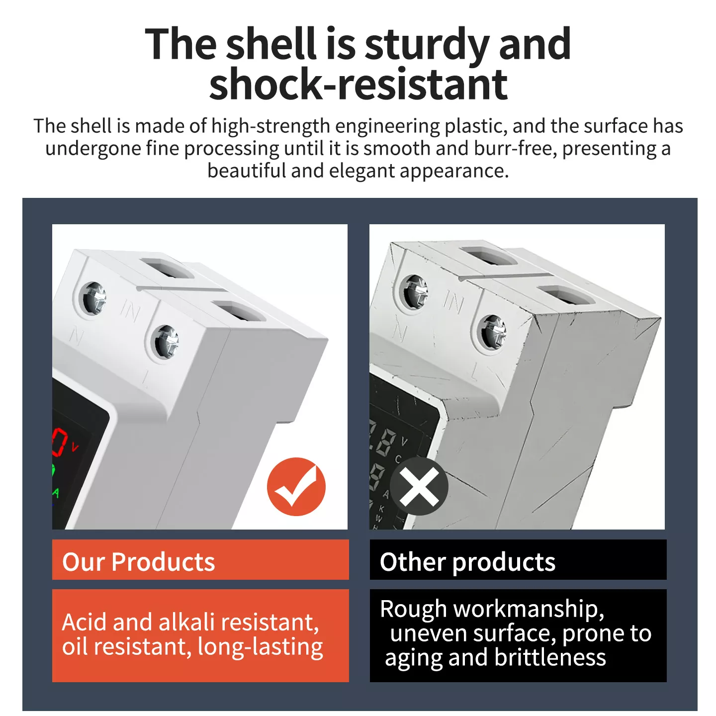• Flame-retardant safety : Acid and alkali resistant ABS casing prevents fire risks from short circuits and overloads, ensuring long-term safe