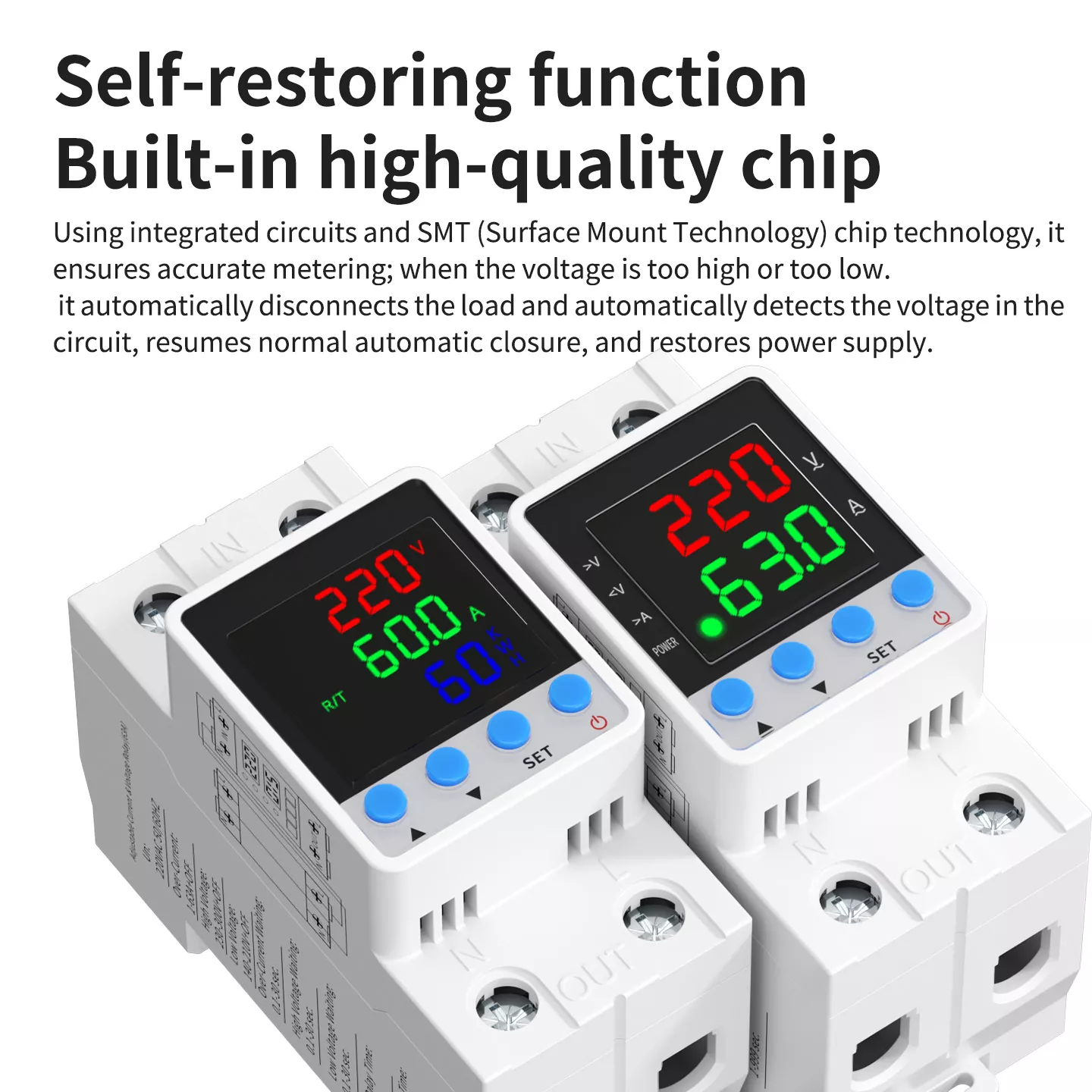 self-restoring function automatically cuts off power during abnormalities and resumes supply once normal, safeguarding