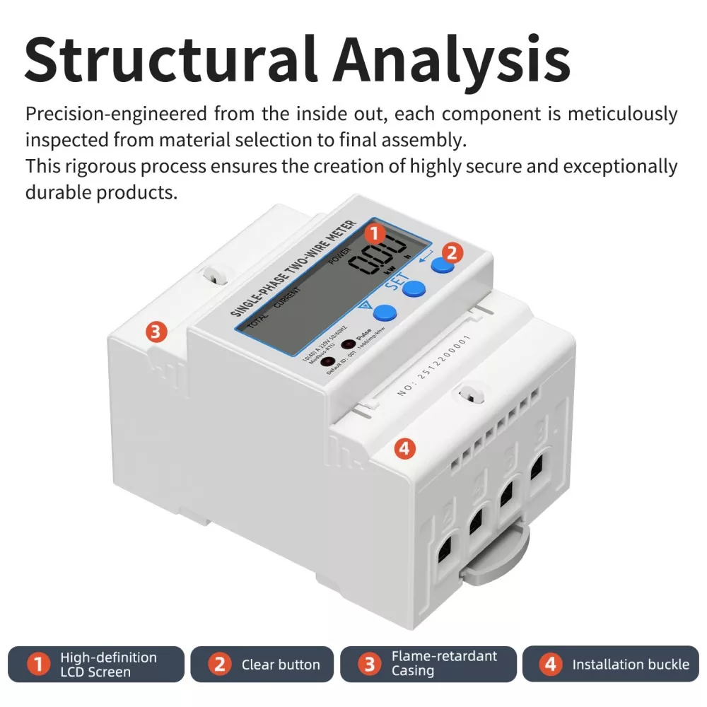 The meter is built with four core components: high-definition LCD screen, clear operation buttons, flame-retardant ABS casing and installation buckle, ensuring stable operation in complex industrial environments.