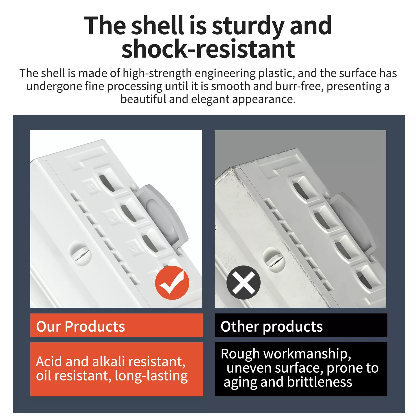 3. Flame retardant Casing: High strength ABS outer shell providing structural protection and electrical insulation.