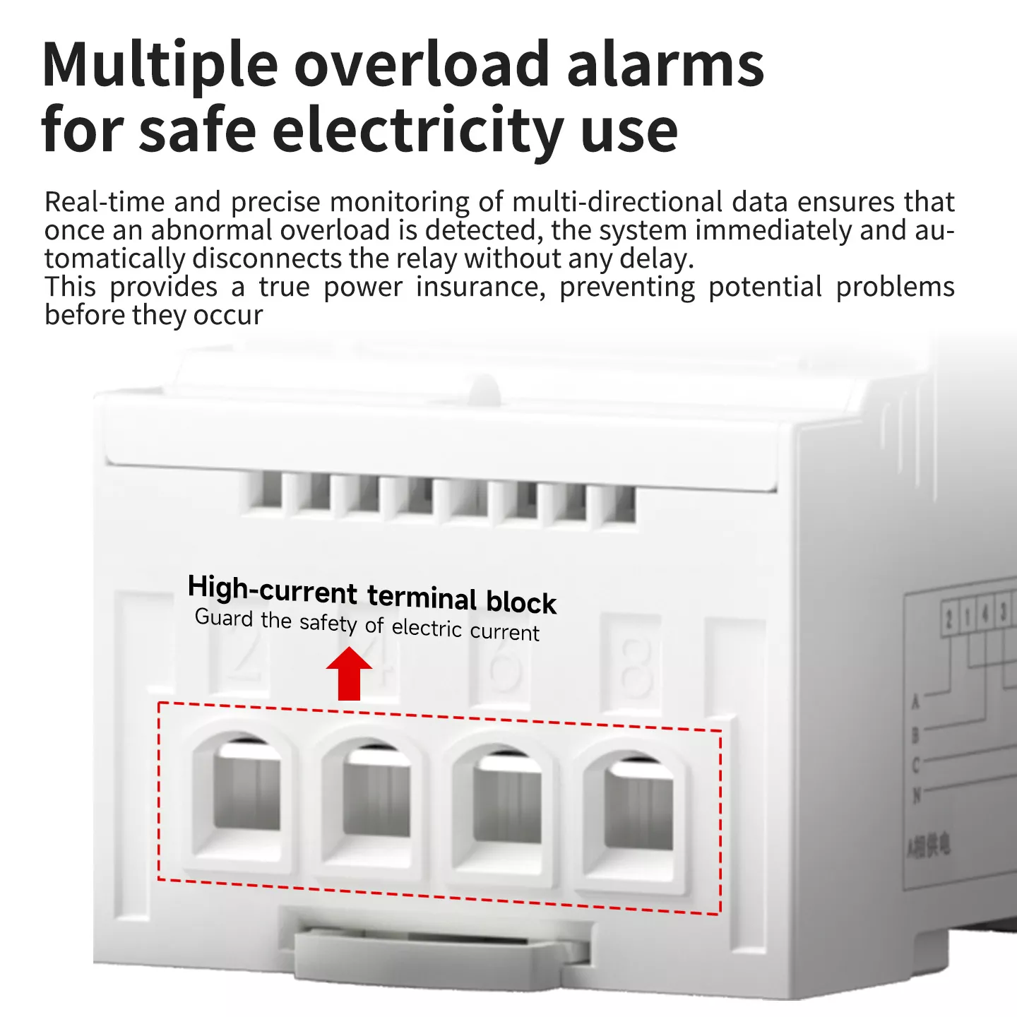 The wiring is simple, enabling quick installation and use; the terminals are made of copper, which has strong conductivity, resulting in faster output and less loss. The high current terminal block guards the safety of electric current, while multiple overload alarm functions provide real time warnings for abnormal power conditions, effectively preventing equipment damage and ensuring safe electricity use.