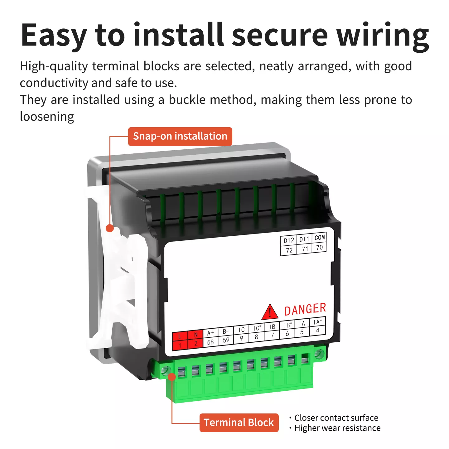 • HIGH-QUALITY TERMINAL BLOCK : Firmly installed, simple wiring, good conductivity, high wear resistance, ensuring safe voltage transmission.