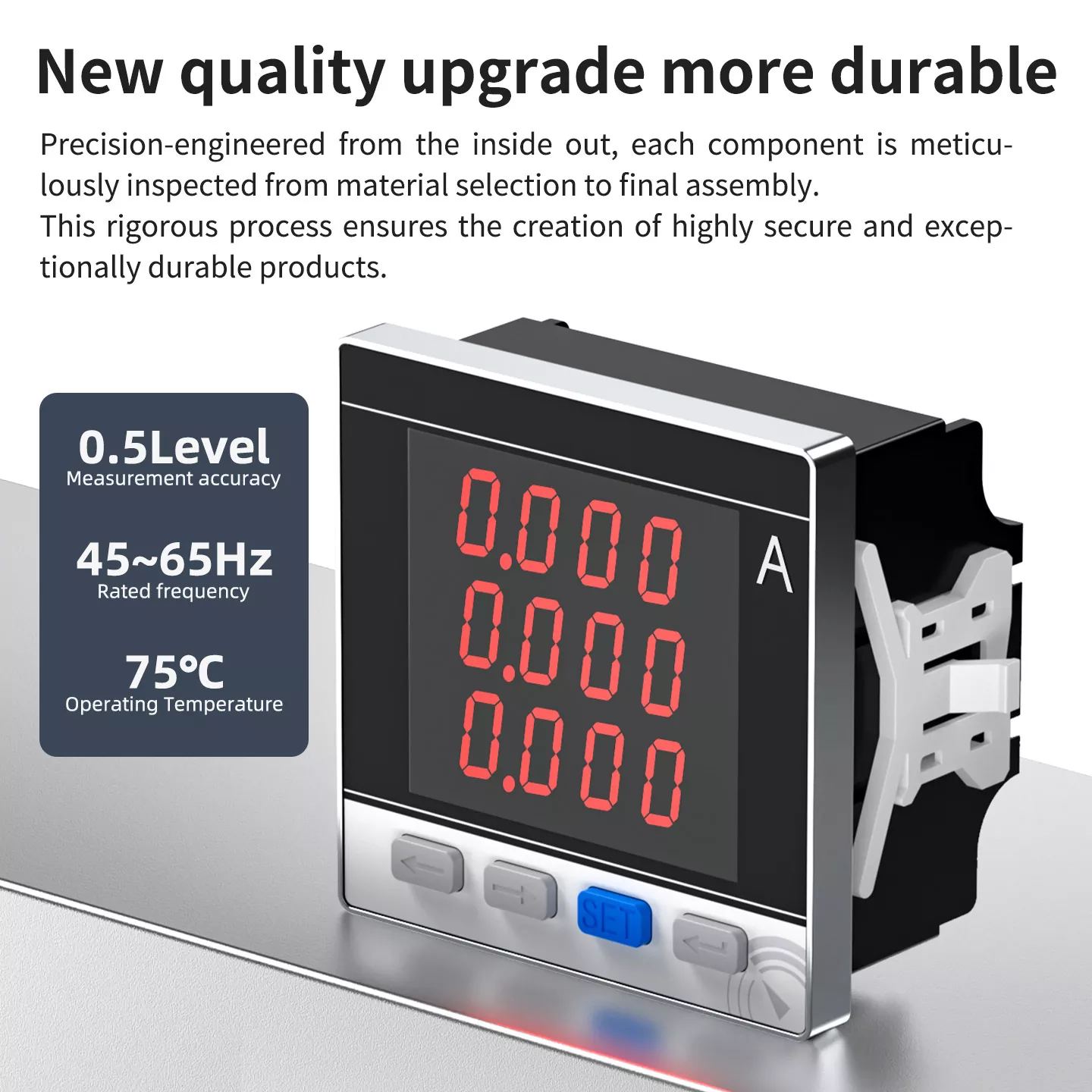 Our three phase ammeter has undergone a full quality upgrade. Precision engineered from the inside out, each component is meticulously inspected from material selection to final assembly. We utilize imported high quality chips and integrated welding technology to ensure fast core processing and stable performance. The shell is made of high strength flame retardant ABS material, which is acid and alkali resistant, oil resistant, anti aging and shockproof. Each product undergoes strict aging test, accuracy calibration and withstand voltage test before leaving the factory, ensuring highly secure and exceptionally durable performance.