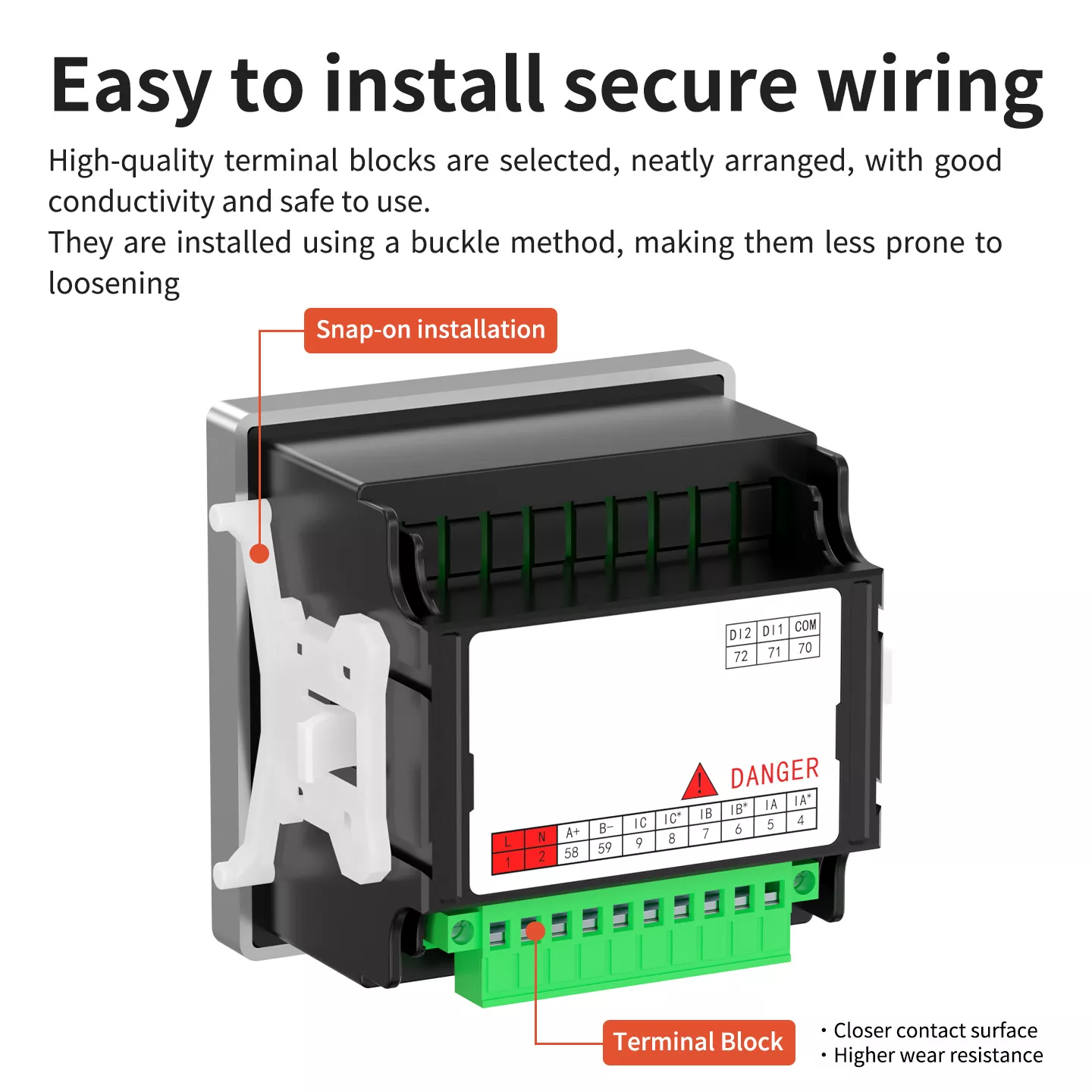 6. TERMINAL BLOCK: High quality copper terminals with closer contact surface and higher wear resistance, ensuring secure wiring.